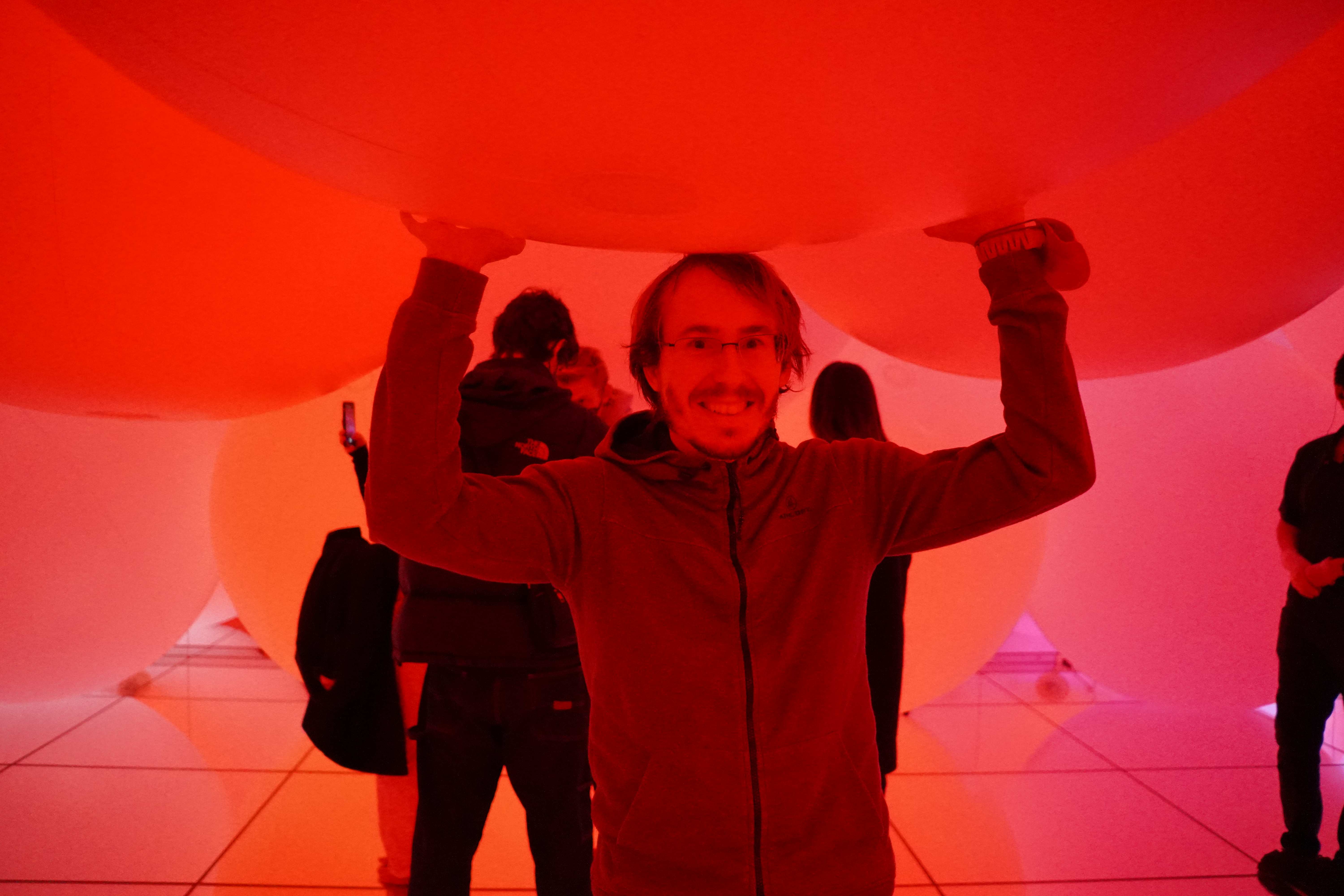Tokio je velmi inspirativní místo. Umělecká scéna je tu velmi různorodá. Aspoň myslím. My jsme svoji vášeň pro umění ukojili v teamLab. Je to umělecká expozice, která využívá digitální technologie, jejichž pomocí láká návštěvníky k interakci. Přes aplikaci v telefonu můžete zasahovat do vizuálních projekcí a spolu s ostatními se podílet na vytváření unikátního zážitku. Občas nám ta aplikace i fungovala, takže jsme si dokázali například poslat po stropě vlastního motýla. V podstatě se zde nejde neúčastnit. Hned na začátku jsme byli požádáni, abychom si v šatně sundali boty i ponožky a než jsme se stihli rozkoukat, už jsme stáli až po kolena ve vodě i se všemi ostatními. TeamLab projekty jsou i v Osace a v Pekingu a dočasné expozice bývají v různých koutech světa. Tématem tokijské expozice byly planety.