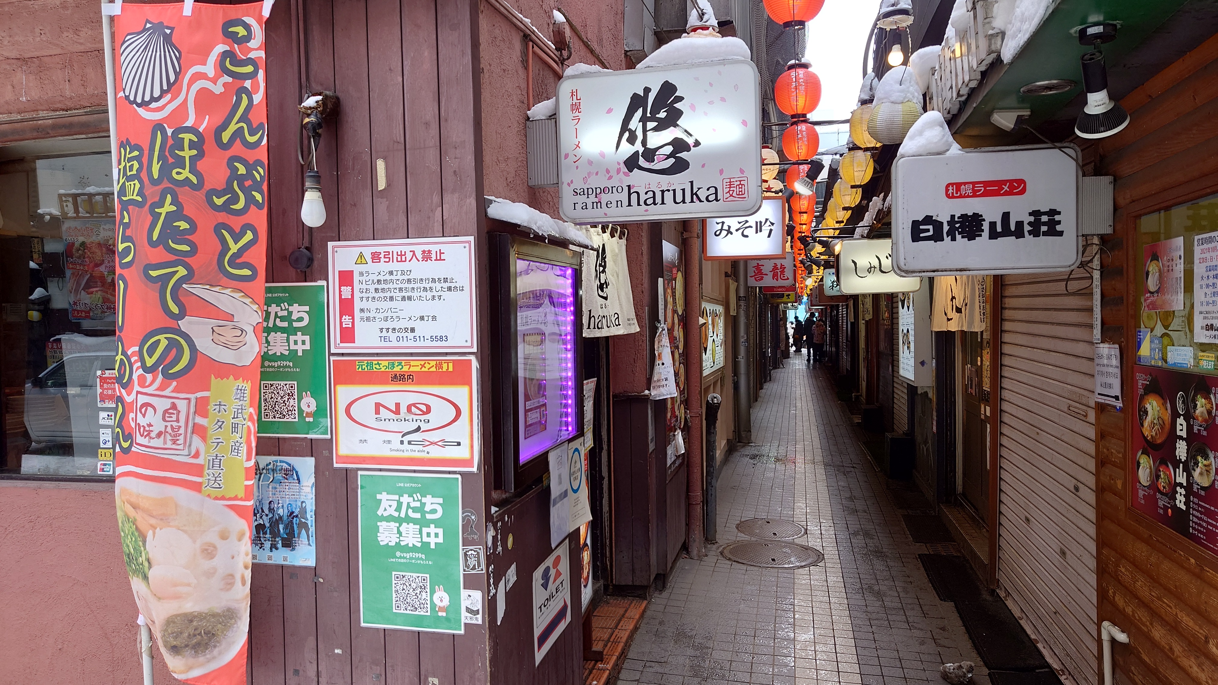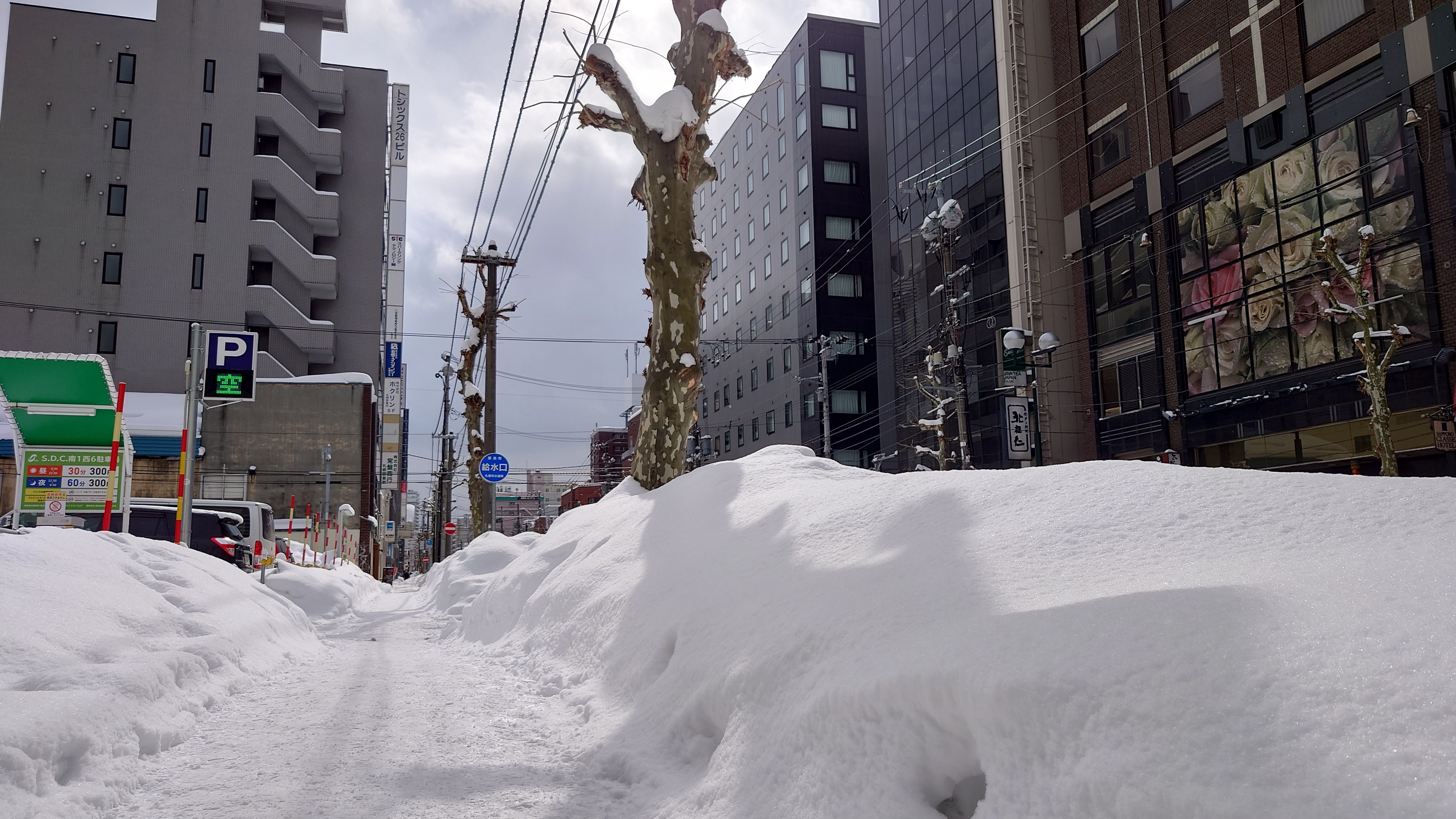Dvoumilionové hlavní město prefektury Hokkaido. Velkoměsto pod sněhem. Sapporo bylo zajímavé mimo jiné tím, jak samozřejmě tam všechen ten sníh působil. Půl metru udusaného sněhu na chodnících i na silnici? Třímetrové hromady sněhu na rozích ulic? To všechno se tam zdálo naprosto přirozené. Nutno podotknout, že Sapporo je město připravené na sníh. Narazili jsme tu na vyhřívané chodníky i na zastřešené uličky plné restaurací, obchodů a dalších služeb. Mají tu opravdu široké silnice, což v zimě není ani tak poznat, protože některé pruhy používají na skladování odhrnutého sněhu. Strhla se vánice a vy musíte někde být? Není problém. Velká část centra se dá projít pod zemí. Vypadá to jako město pod městem. Většina veřejných budov zde má podzemní patra, která jsou propojená velkými podzemními ulicemi. Nepředstavujte si ponurý tunel, kde se bojíte o svoje bezpečí. Jsou to opravdu široké ulice lemované obchody a restauracemi. Narazíte tu na lavičky a různá posezení. Jsou tu i zákoutí, která někteří využívají k práci. Nejsou tu auta, jenom chodci. I tak je občas náročné dostat se z jedné strany na druhou, protože jsou tam opravdu davy lidí.