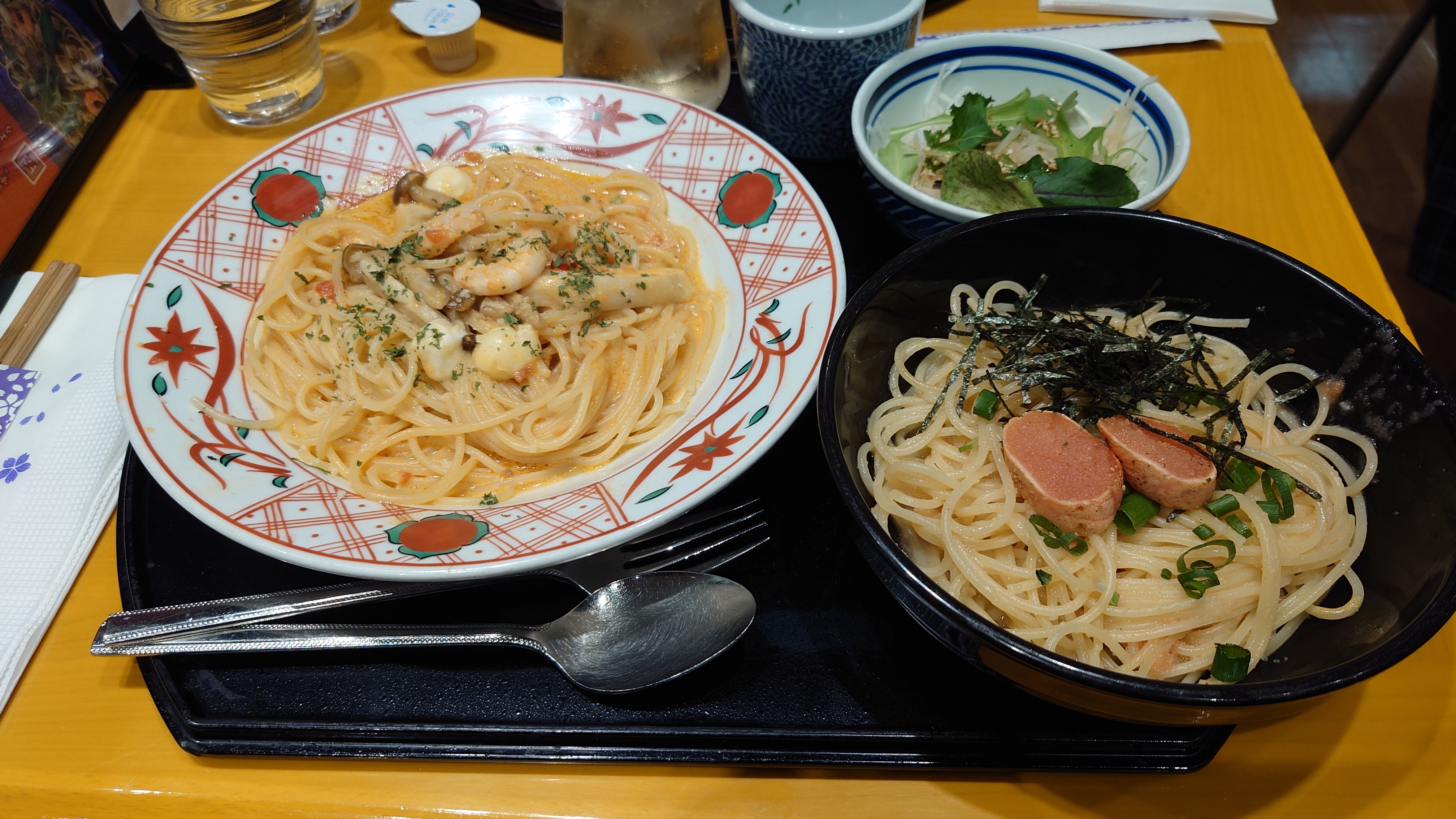 Tady jsme měli konečně i prostor si trošku vařit. Takže jsme odvážně vyzkoušeli uvařit smažené nudle s krevetami, několikrát. Tohle bylo v Japonsku velmi jednoduché, protože všechny ingredience, včetně nudlí, se dají koupit připravené rovnou na pánev. Kromě vlastního vaření jsme tu objevili spoustu zajímavých restaurací, ať už to byl rámen z různých koutů země nebo italská restaurace s japonským spinem.