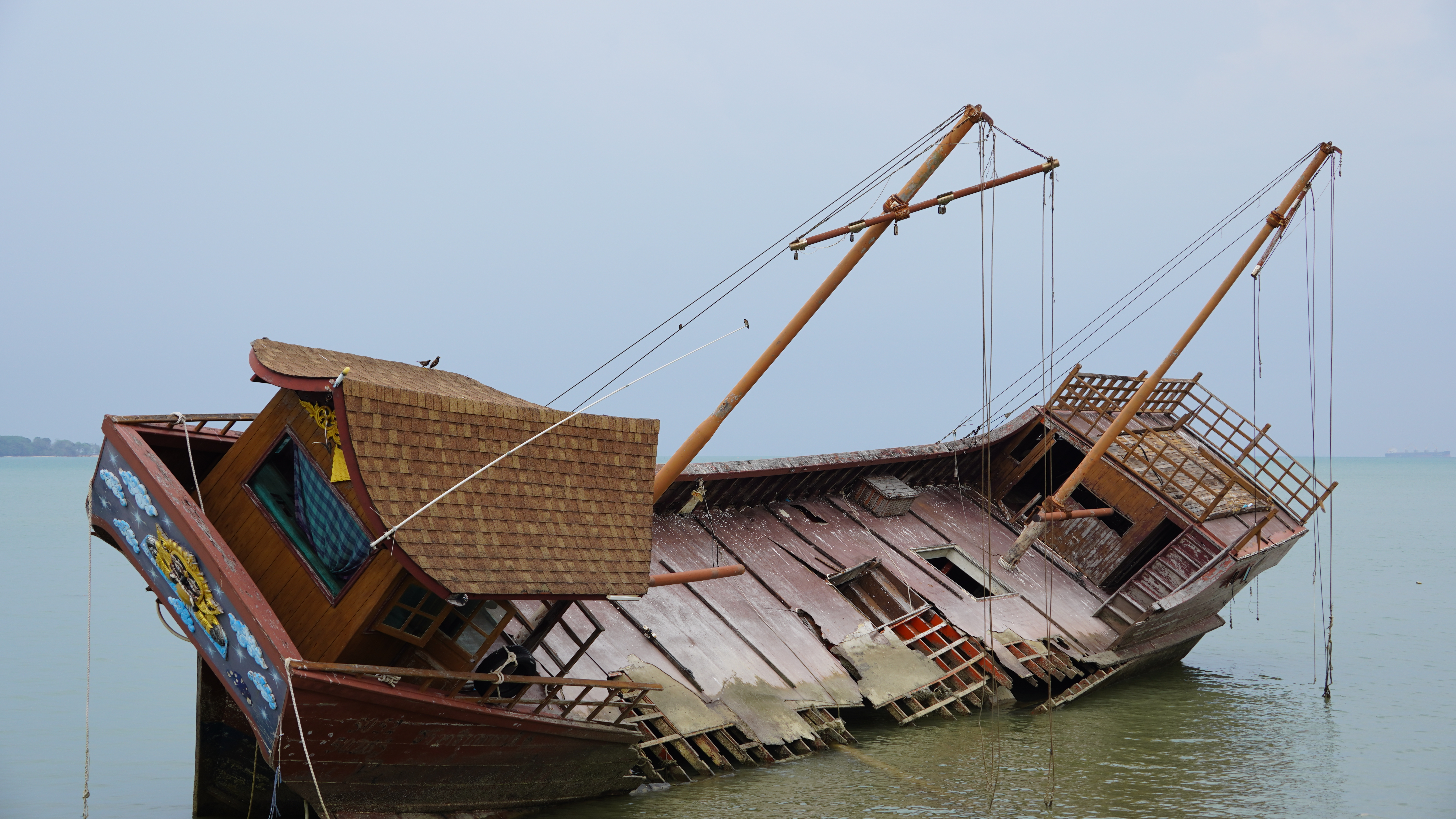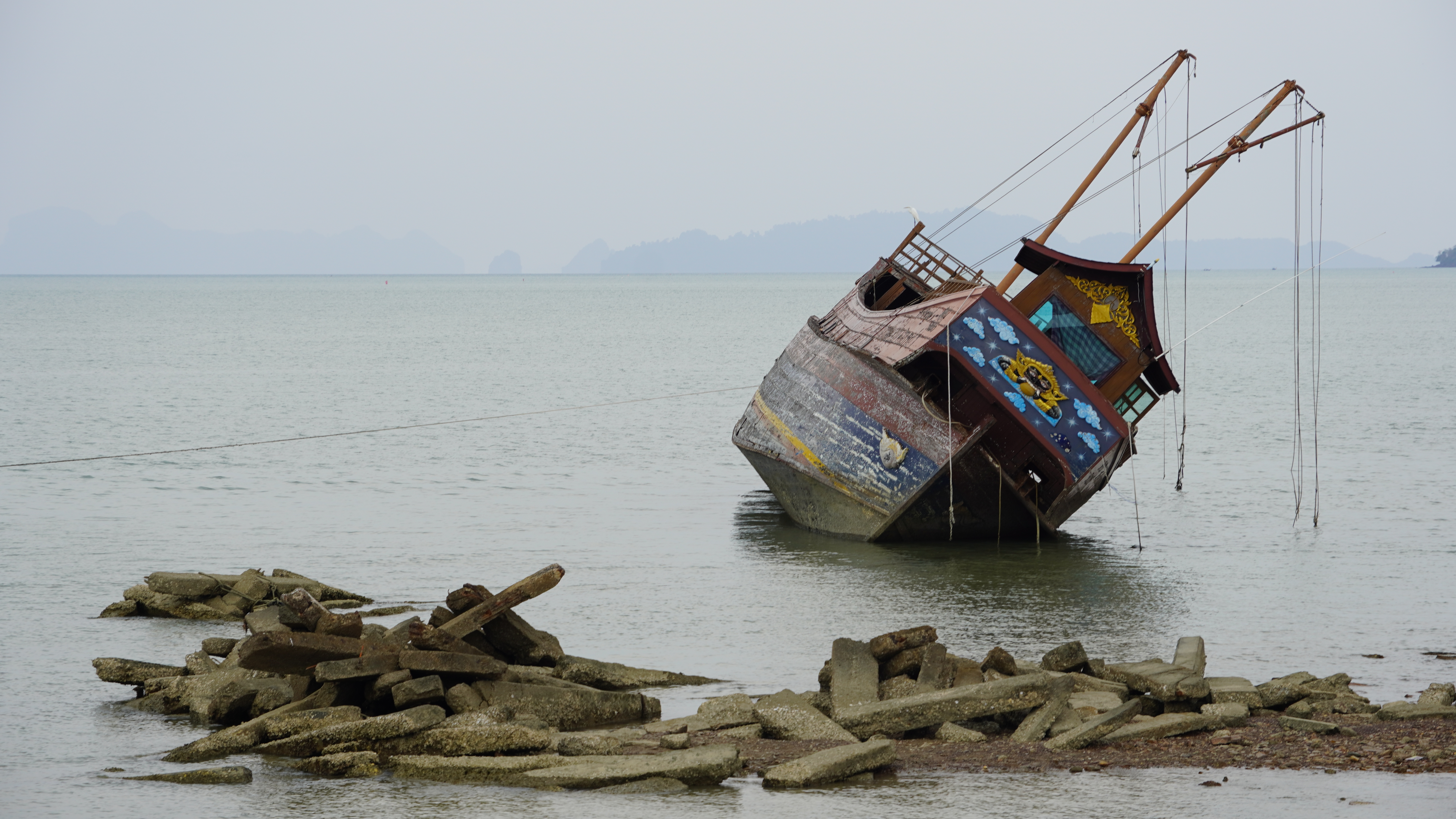 Ve městě jsme si nejdřív prošli dlouhé molo, odkud pravidelně odjížděly lodě, které fungovaly jako hromadná doprava mezi blízkými ostrovy. Nad hlavou nám létali nejrůznější ptáci, stahovaly se nad námi mraky a v dálce byla slyšet bouřka. Pomalu jsme došli až na konec mola. V dálce bylo vidět několik menších ostrovů. Kolem nás prošel pár mužů s rybářským náčiním. Sešli po schodech dolů a zmizeli někde pod molem. Prošli jsme celé molo zase zpátky. Malé domky postavené na dřevěných konstrukcích nad hladinou moře se odsud vinuly do dálky podél pobřeží. Nedaleko nás byl vrak lodi. Šli jsme blíž, abychom zjistili, zda je to skutečný vrak nebo jenom replika. Zblízka to vypadalo na hodně věrnou repliku skutečné lodi. Byla sice docela malá, ale detailně propracovaná. Na vrcholku stěžně seděl nějaký dravec.